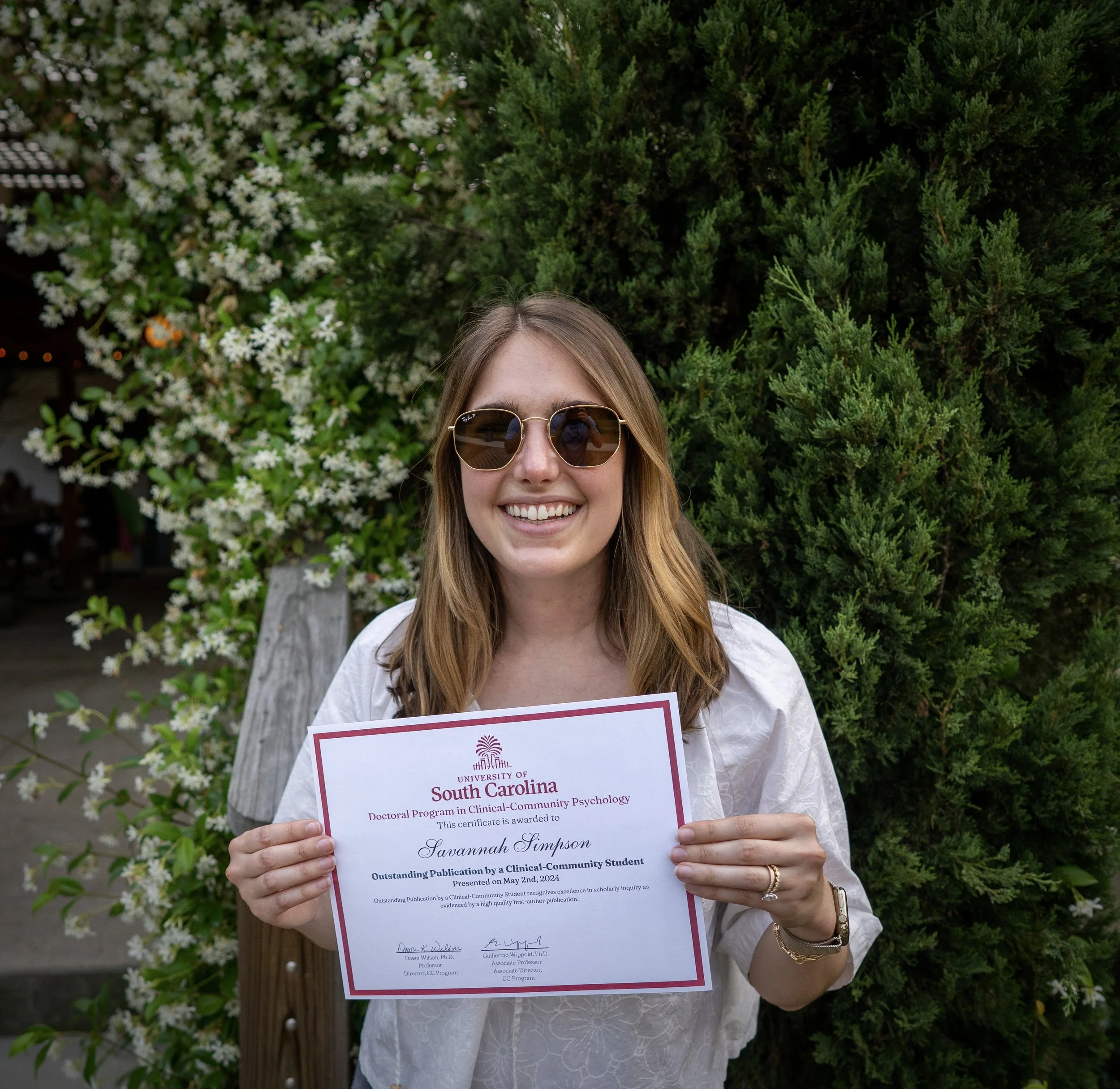 YESS Lab graduate student, Savannah Simpson, recently won two awards! She was awarded the Graduate School’s Rhude M. Patterson Fellowship and the Clinical-Community Psychology Program’s Outstanding Publication Award. The Rhude M. Patterson Fellowship is awarded to a female graduate student in the humanities and/or social sciences field who exhibits excellence in graduate study, research, and scholarship. The Clinical-Community Psychology Program’s Outstanding Publication Award recognizes a graduate student’s first author publication with a high impact on the field. Check out Savannah’s publication here! Congratulations, Savannah!